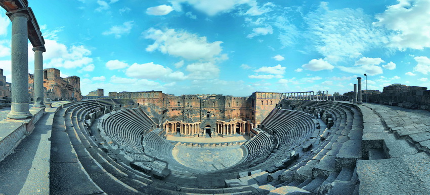 وصلت شهرتها إلى جميع أنحاء العالم منذ أقدم العصور وخاصة في زمن الرومان وكان لها حضور مميز في نشر تعاليم الديانة المسيحية في القرون الأولى للميلاد وقد اعتبرت المفتاح الرئيسي بين الشمال والجنوب عبر طريقي الحرية والحج كما تضم عدداً من العمائر المسيحية المبكرة وعدداً من أقدم المساجد في العالم (الجامع العمري- الحمامات الرومانية- قوس النصر- دير الراهب بحيرة والكاتدرائية...) أدخلت إلى لائحة التراث العالمي في عام 1980 وتشتهر بمسرحها الروماني الذي مازال يستعمل حتى الآن ويصنف بأنه الأجمل والأكبر في الشرق القديم حيث يستوعب أكثر من خمسة عشر ألف متفرج.