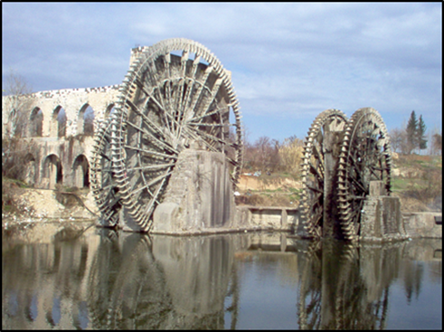 لعبت طبيعة نهر العاصي المتعرجة ومنحدراته دوراً كبيراً في وجود هذا الاختراع، وبما أن مستوى المياه لنهر العاصي أخفض من مستوى السهول والأراضي حوله فكان لابد من وجود طريقة لرفع المياه إلى هذه الأراضي. لذا ابتكر الحمويون الأقدمون فكرة النواعير مما سهل وصول المياه إلى أعلى منطقة تحيط بنهر العاصي دون استعمال أي نوع من أنواع الطاقة كما أنهم درسوا قوة المياه وبنوا الطواحين التي تعمل بقوة دفع المياه وهي باقية إلى وقتنا الحاضر.