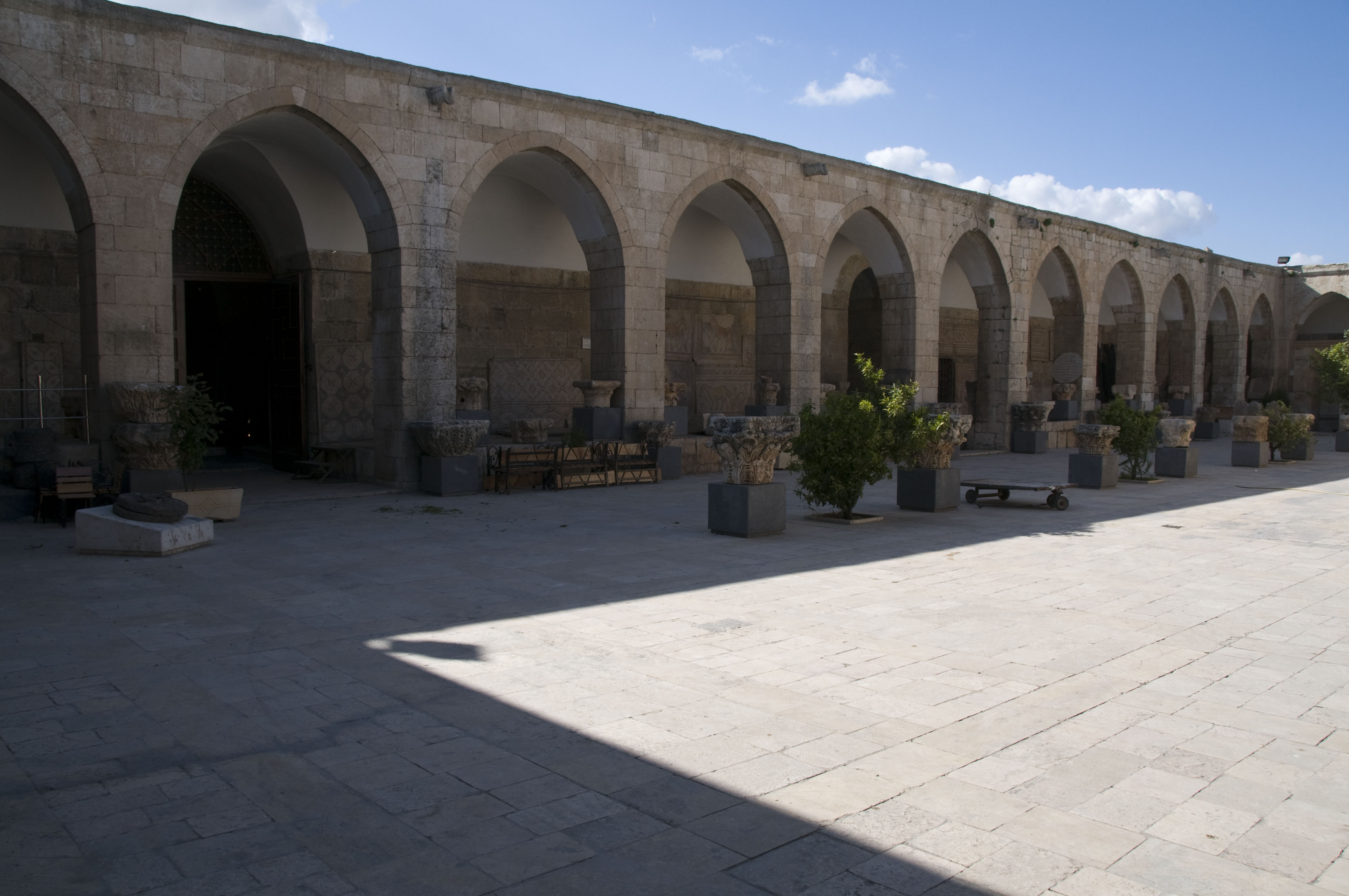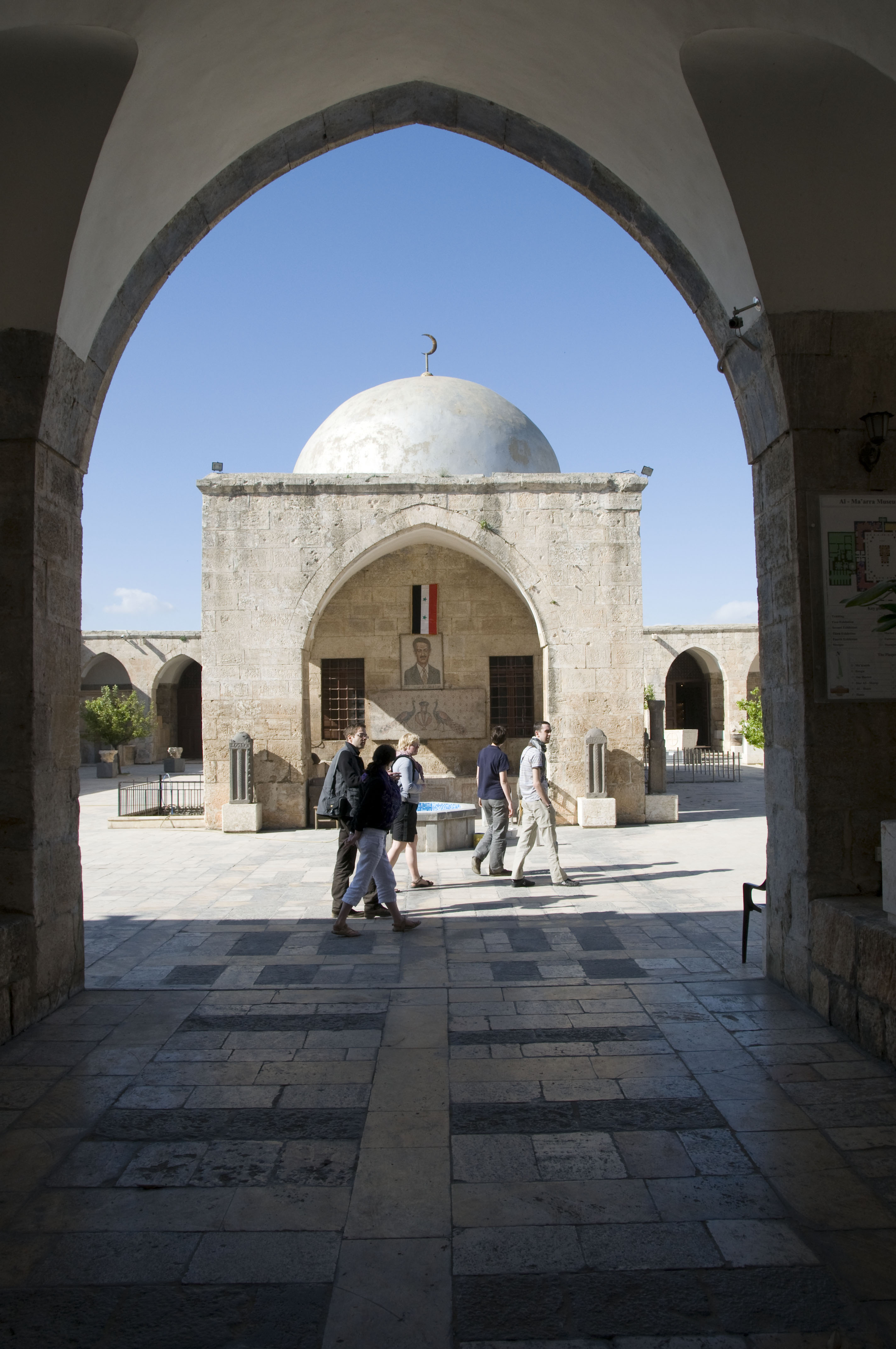 ان بناء هذا المتحف هو بحد ذاته تحفة أثرية , حيث أن بناء هذا المتحف هو عبارة عن خان عثماني شيد عام (1753م) حافظ على كامل عمارته وأبوابه الملتفة الجميلة . ويحتوي هذا المتحف على اللقى الأثرية المكتشفة في منطقة المعرة والعائدة إلى فترات مختلفة وأهمها الفترة الرومانية – البيزنطية – الإسلامية واشتهر هذا المتحف عالمياً بضمه عدد كبير من اللوحات الأرضية المصنوعة من المزاييك ( الفسيفسائية ).